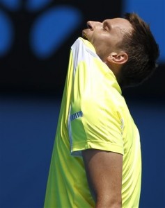 I still don’t know why some people back Soderling to win majors. The best explanation I can dredge up is that they fancy themselves as cool-hunters, and are determined to be in on the next big craze from the outset. Last year it was ironic yo-yos and whatever came after Twitter, this year it’s taciturn Swedes. Lock it in. Sadly, Soderling put in his usual quarterfinal effort, one round early, for some a premature capitulation, meaning he left too soon. For his part, Dolgopolov was a revelation, quite literally for some. For those late to the party, he’s a crafty young Ukrainian. Channel 7, unhinged by the dearth of top-line local tennis talent, has made a great deal of the role his Australian coach has played. Against his will, he is now Aussie Alexandr, which rolls off the tongue like the drool of someone lobotomised by the coverage.